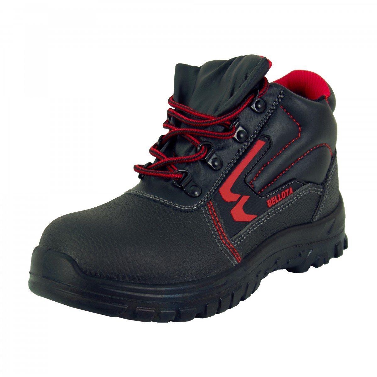 Em pele pigmentada com resistência à penetração e absorção de água. Sola: dupla densidade PU; Palmilha anti-perfuração metálica; Colarinho acolchoado, lingueta em fole. Norma: UNE EN ISO 20345:11