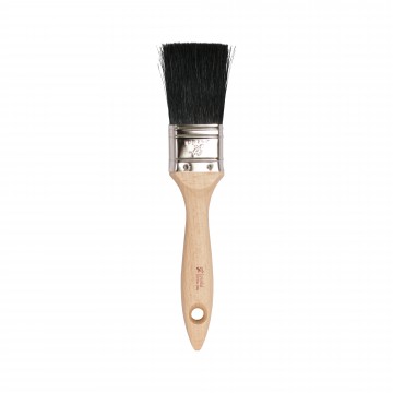 Cerda pura preta, virola niquelada, cabo plástico (polipropileno);