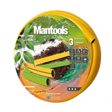 Pressão de trabalho: 8bar; Pressão de rutura: 24bar; A mangueira MAN YELLOW é uma mangueira flexível e resistente a pressões médias que a torna adequada para rega de jardins ou para outras utilizações domésticas. COMPOSIÇÃO Mangueira em PVC Flexível com 3 camadas: Camada 1 (interna) - PVC Flexível de cor preta Camada 2 - Fio de poliéster de alta resistência espiralado Camada 3 (externa) - PVC Flexível de cor amarela com uma tira em cristal. TEMPERATURA DE UTILIZAÇÃO -15 / + 65ºC.